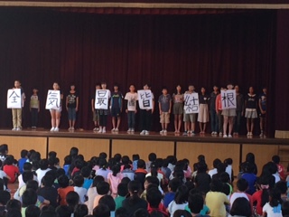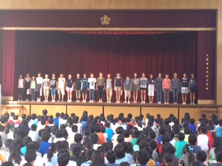 今日の児童集会では、後期の代表委員のあいさつがありました。
