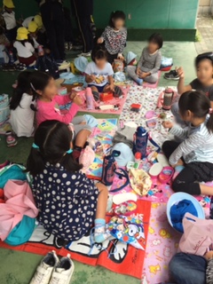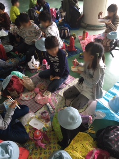 雨が降ってもいいようにイベント広場でお弁当を食べました。