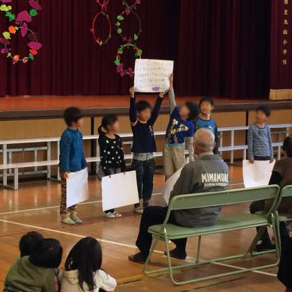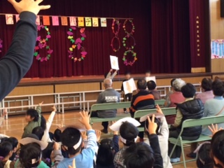 いよいよ、おいもパーティーの始まりです。地域の方々と一緒にした、苗植えや芋掘りの思い出を発表したり、サツマイモ料理の説明、おいもジャンケンなど、楽しいひと時を過ごしました。
