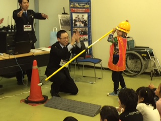 また、車いすのスロープや落下物を取るカンキャッチャーなど駅の道具についても教えてもらいました。