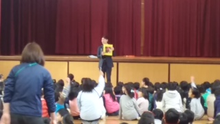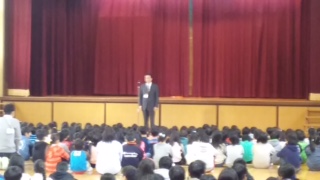 3年生の代表児童が、2学期を振り返り感想を発表しました。「作品展のお店作りで、工夫しました。」「マットの前転や後転のコツをつかんで上手に回れました。」「運動会のダンスが、リズムに乗って踊れて楽しかったです。」など、堂々と発表していました。