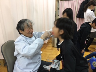 歯の健康のため、4年生はフッ素塗布を行いました。歯科校医先生や歯科衛生士さんより正しい歯磨きの仕方や健康な歯を保つ大切さについて学びました。