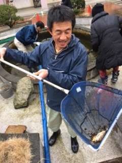 仮設正門の工事が来週から始まります。その前に池の鯉たちは近隣校の池に引っ越ししました。