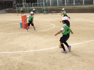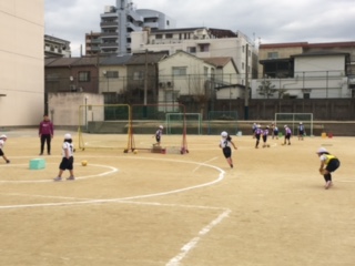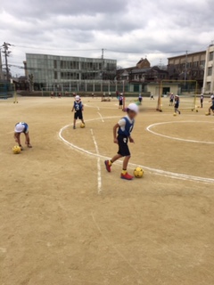 2年生は寒さに負けずボールけりゲームに取り組んでいます。チームでめあてを決めて、声かけしあって練習しています。どのチームも勝利をめざしてがんばれ!