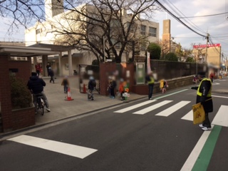 正門からの登校は今日が最後です。明日からは仮正門からの登下校となります。