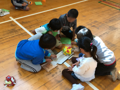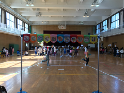 講堂には、2年生が作ったおもちゃコーナーがたくさん立ち並び、1年生と一緒に楽しく遊びました。