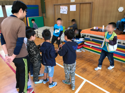今日は、2年生が1年生をおもちゃまつりに招待しました。