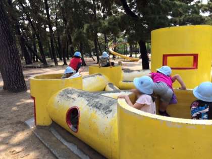 前日の雨で遊具が濡れているのではないかと心配しましたが、少し拭くだけで大丈夫でした。子どもたちは、元気いっぱい遊ぶことができました。