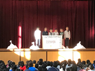 児童会が提案してすすめてきた、プルタブ回収の結果発表がありました。