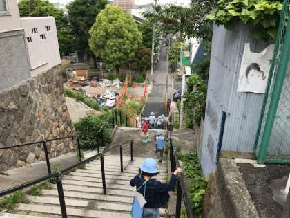 「この通りは、お店が多いな」「上町台地だから、階段があるのかな?」など、校区のポイントで確認しながら歩きました。