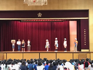 今日の児童集会は、丸山子どもカーニバルのお店宣伝でした。どのクラスも、楽しいお店になりそうです。