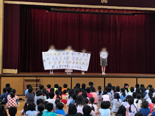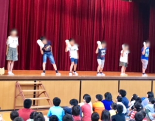 カーニバルの開会式では、児童会の子どもたちが今年のめあてを発表したり、お店を回る時の注意を劇で教えてくれたりしました。