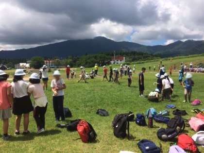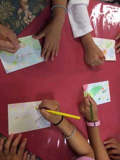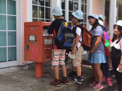 ハガキの記入と投函、高原でのグループ遊びに満面の笑顔が見られます。