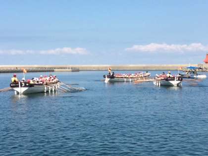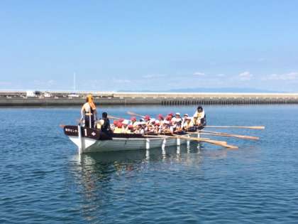 櫂(カイ)をこぐタイミングを合わすのが難しいようでしたが、みんな一生懸命気持ちを合わせて頑張っていました。