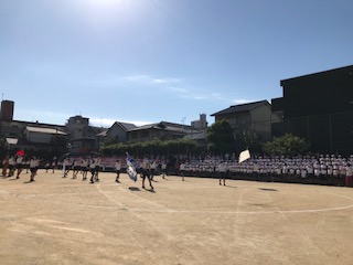 台風のため小学校での開催となり、応援合戦と団体演技のみの発表でした。しかし、子どもたちは、これまで練習してきた成果をしっかり発揮し素晴らしい演技を見せてくれました。