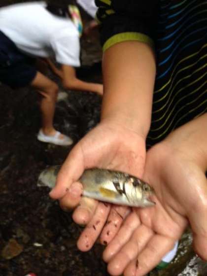 岩かげに隠れたり、せっかくつかんでもつるりと逃げたり、