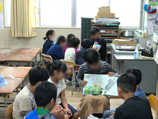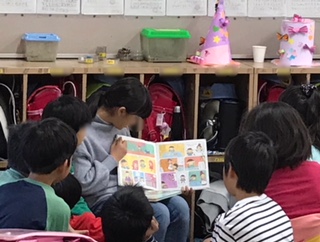 今日の読書タイムは、スマイル読み聞かせでした。6年生が、スマイル班の1〜5年生のメンバーに絵本の読み聞かせをしてくれました。