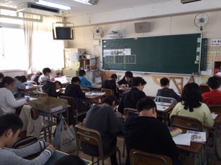 本校では、本年度より学力向上推進モデル事業(算数科)の指定を受け、大阪市教育委員会の学力向上推進指導室の山田先生に教えていただきながら、月2回の算数科の授業研修会を行ってきました。
