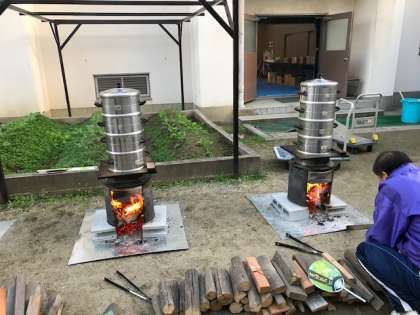 朝早くから、PTAや地域の方々が来てくださり、火おこしや臼の準備をしてくださっています。