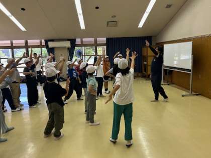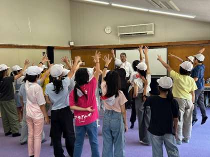 チームビルディングというプログラムをしました。クラスごとに分かれてスタッフの方と一緒に楽しくゲームをして仲間作りをします。