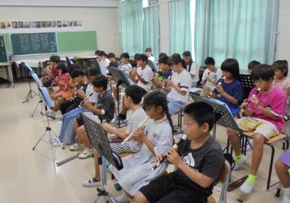 4年生がリコーダーをしました。ファの♯の吹き方を学び練習しました。きれいな音が出ていました。