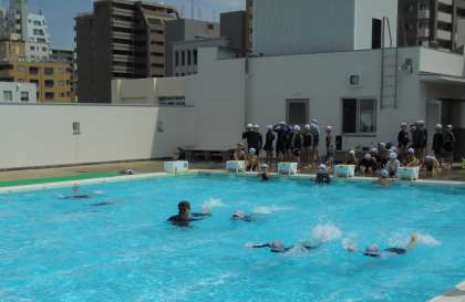 3年生は、泳ぎ方は自由で何メートル泳ぐことができるか記録をとりました。夏休みの水泳教室に参加した児童は練習の成果を発揮して25ⅿ泳ぐことができました。どの児童も持てる力を出して25mに挑戦しました。