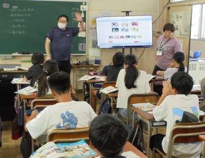算数は「拡大図と縮図」の学習をしました。今日は拡大図の書き方を考え、実際に書いてみました。外国語はC-netの先生と一緒に英語を学びました。今日は、3ヒントクイズを聞いて、答えとなる絵をさがしました。2学期から算数と外国語は担当する先生が代わっています。