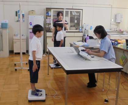 今日は2年生の発育測定の日です。発育測定の前に教室で保健指導をしました。