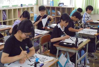 書写の学習では、「税」「税金」を毛筆で書きました。手本をよく見て、正しく整った字を書けるようにがんばりました。外国語は「My Summer Vacation」をC-Netの先生と一緒に学習しました。今日はリスニングを中心に学習しました。