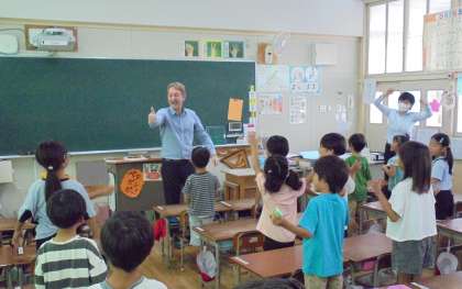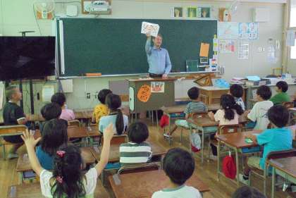 阿倍野区英語等支援事業で英語によるコミュニケーションを体験し、ネイティブスピーカーとのふれあいを通した英語レッスンを行いました。子どもたちはとても喜び盛り上がりました。
