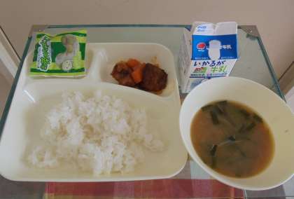献立は、酢豚、中華みそスープ、まっ茶大豆、ご飯、牛乳です。