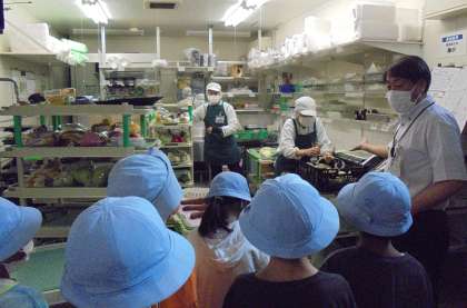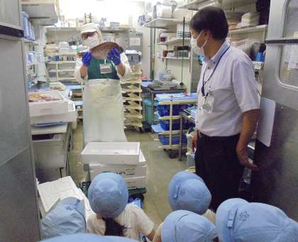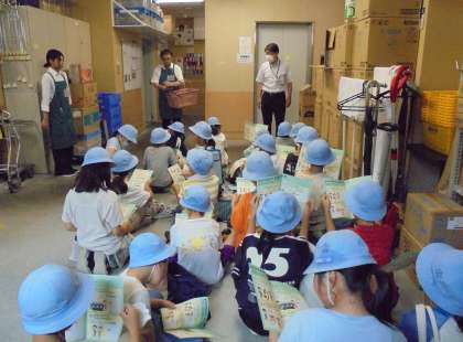 3年生がスーパーマーケットの社会見学に行きました。各クラスを2つに分け、加工場の見学と店内の見学をしました。畜産、農産、水産、惣菜の加工場を見学しました。