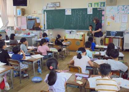 2組は国語「かいがら」を学習しました。場面の様子を想像しながら、吹き出しに書きました。