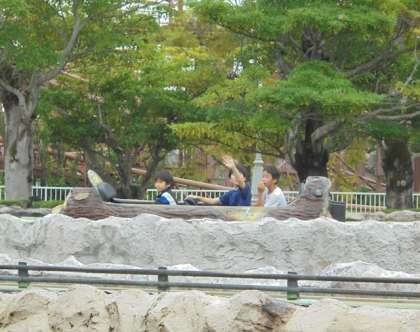 急流すべりは子どもたちに人気のアトラクションです。少し濡れた子どももいましたが、それが楽しいみたいです。