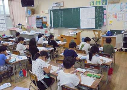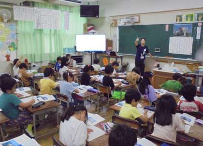 1年生が国語「いろいろなふね」を学習しました。今日はフェリーボートのすごいところを見つけ、役目、つくり、できることの3つに分けてワークシートにまとめました。