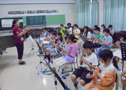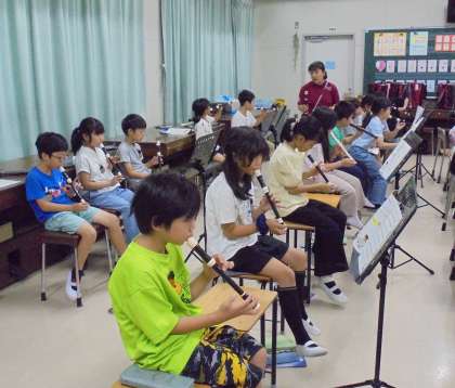 リコーダーの指づかいで高い「レ」の吹き方を練習しました。中指で押さえるのでリコーダーを支えるのが難しいです。練習を重ねるときれいな音が出ていました。