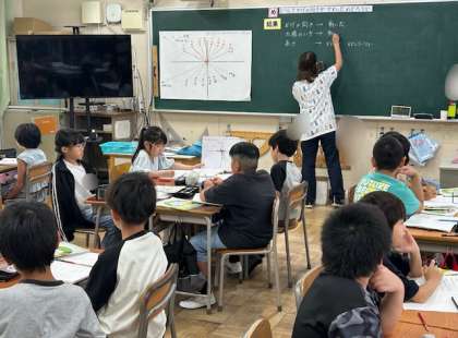 3年生が理科「どうしてかげの向きは変わったのだろうか」を学習しました。9月30日に観察した記録をもとにして、かげの向き、かげの長さ、太陽の位置を調べ考えました。