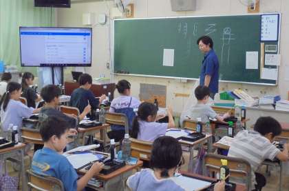3年生が書写「小筆でかいてみよう」を学習しました。小筆は鉛筆より立てて持ち、線や点画を書く練習をしました。