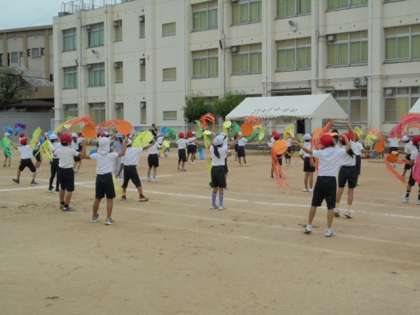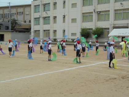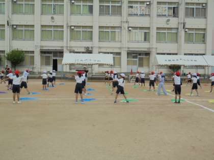2年生が団体演技の仕上げをしました。とても上手になっています。運動会を楽しみにしてください。