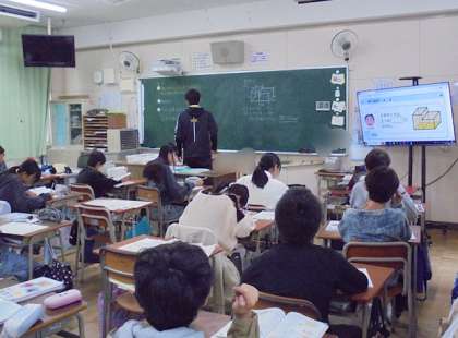 1組は算数「角柱と円柱の体積」、2組と3組は国語「プラスチックごみの問題について考えよう」を学習しました。
