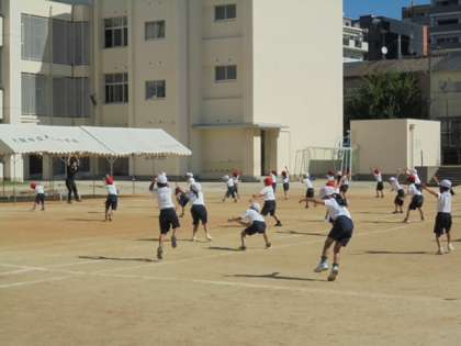 1年生が運動会の団体演技「みんななかよし☆みんないいね!」を練習しました。音楽のリズムに乗って、楽しく元気に踊っています。