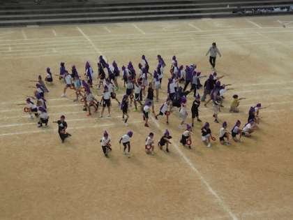 4年生は「舞え!丸山エイサー!」をしました。元気いっぱい全力で踊っています。