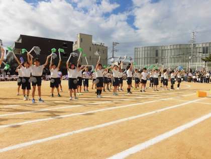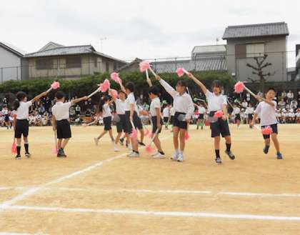 3年生の団体演技「心をもやせ!レッツ・ダンス」です。笑顔でリズミカルにダンスをしました。