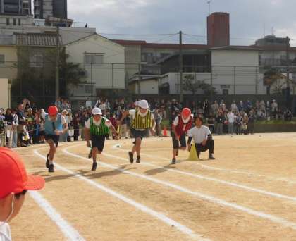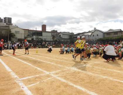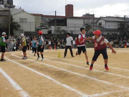 6年生の紅白対抗リレーです。最後まで白熱したレースでした。