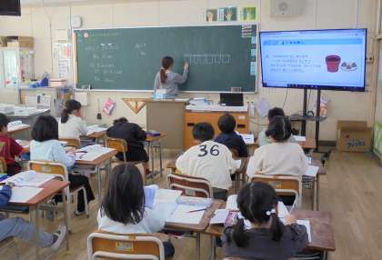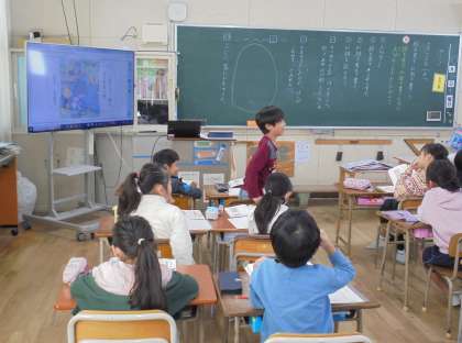 1組は国語「絵を見てお話を書こう」を学習しました。絵を見て続きのお話を作りましたが、子どもたちの発想の豊かさに驚きです。2組は算数「4の段の九九」を学習しました。ひとつ分の数×いくつ分の考え方で4の段の九九を学びました。3組は「3の段の九九」を学習しました。