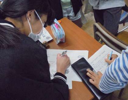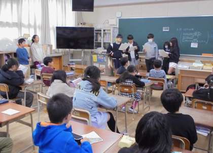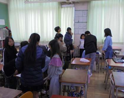 14日に長居公園でたてわり全校遠足があります。今日の集会は、スマイル班ごとに集まって、たてわり全校遠足の打ち合わせをしました。