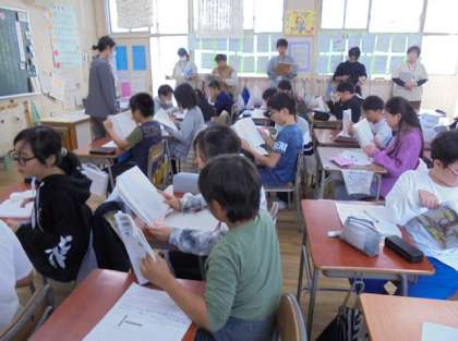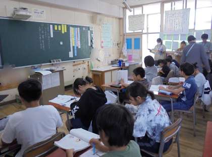 5年3組で国語科の授業研究を行いました。「和の文化を受けつぐ」の単元で、ほかの情報を重ね合わせて読み、自分の考えをまとめて交流し合いました。