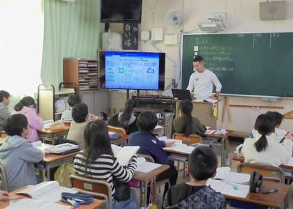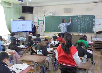 1組は国語「じゅく語の意味」で、意味の似ている漢字を重ねる、反対の意味の漢字を組み合わせる、主語と述語の関係など熟語の種類を学習しました。2組は算数「四角形の特徴はどこに注目すればわかるか考えよう」で、向かい合った辺が平行かどうかに着目して考えました。