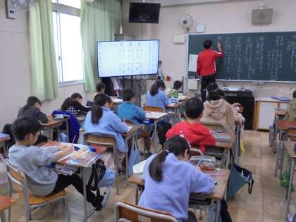 国語「漢字の読み方」で音読み、訓読みの意味を学びました。同じ漢字で音読みする熟語、訓読みする熟語を調べました。また、別の学級では、「話したいな、すきな時間」の発表をしました。好きな時間は休み時間が多かったです。