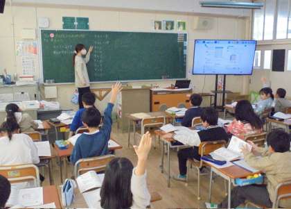 1組は国語「ありがとう」を伝えようを学習しました。今日は手紙に書く内容を考えました。2組は算数「九九のきまりをまとめよう」を学習しました。4の段はかける数が1増えると答えはいくつ増えるか考え、きまりを見つけました。3組は9の段の九九の作り方を考えました。
